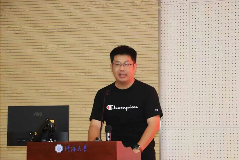 伴随着庄严的国歌,开学典礼正式开始。潘静书记以“奋斗为笔,书写数学人生”发表致辞,她代表学院全体师生对新生的到来表示热烈欢迎,并介绍了学院成立的背景与意义,随后以“解码数学之美”、“传承河海精神”、“绘就人生光谱”三个关键词,鼓励新生感悟数学语言的通用与逻辑之美,培养科研思维;传承学校使命,将个人理想融入国家发展大局;打破学科壁垒,在理工融合中成长为拔尖创新人才。最后,她以函数表达式寄语新生,期望他们在河海开启人生新篇,书写“大哉河海奔前程,毋负邦人期”的华章。