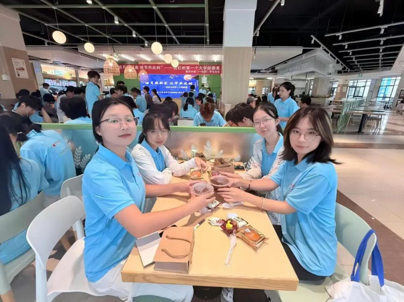 一份来自远方的惊喜为活动注入了家的温暖:活动筹备组提前联系家长录制的祝福视频,以其真挚的寄语触动着每位学子的心弦。温情之后,班导师梁警琦的舞蹈与程睿哲、詹琰语同学合唱的歌曲接力登场,将现场气氛推向高潮。活动的尾声,同学们在温馨交流中品尝学院定制桂花糖芋苗,并互赠手写祝福书签,以这份清甜与真挚,共同珍藏属于2025级新生的中秋独家记忆。