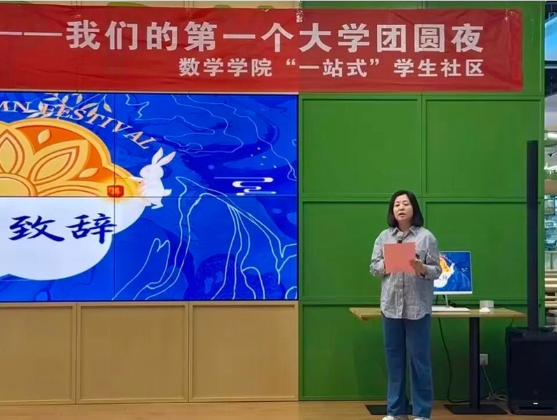 活动伊始,学院党委书记潘静老师以一封特别的“家书”向全体2025级新生致以节日问候。潘书记在致辞中深情说道:“此刻的你们或许正经历着人生第一次独自在外过节的思念。请记住,励学楼永远亮着温暖的灯光,办公室的门永远为你们敞开。”潘老师勉励同学们要坚守对数学的热爱,永葆好奇与热情,在探索中不断发现新的真理。