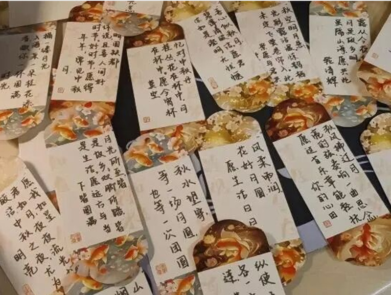 随后,院领导、辅导员与班导师一同为同学们送上色花堂 定制月饼,学生代表李嘉俊则回赠老师由同学们准备的中秋主题团扇,以这份传统工艺品向师长们表达敬意与祝福。一份月饼,一把团扇,传递的是学院与学子间双向奔赴的深厚情谊,让“皓月照新家”的主题内涵显得更加温暖而真切。