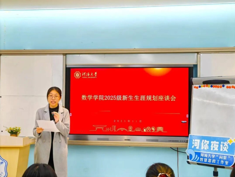 刘卫娟学姐基于自己的专业,谈到了数学类两个专业该如何进行学业规划,通过分享她自身的体会,在场的新生皆对未来发展有了清晰的规划。同时,数学是一门很有挑战的学科,王浩广学长对于新生平衡学业与生活这一难题为2025级新生提出他的看法,为新生后续校园生活的安排指明道路。