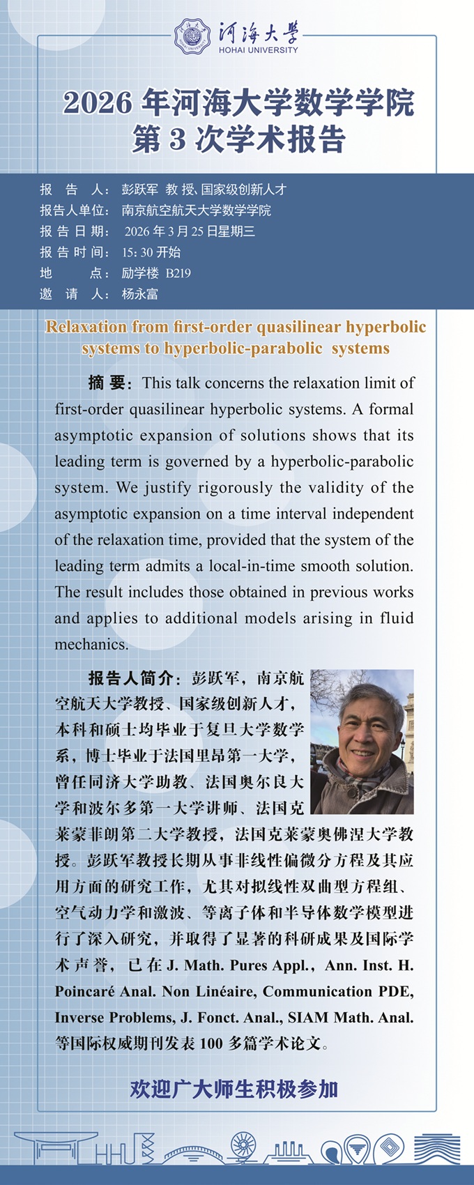 色花堂 2026年第3次学术报告:Relaxation from first-order quasilinear hyperbolic systems to hyperbolic-parabolic systems